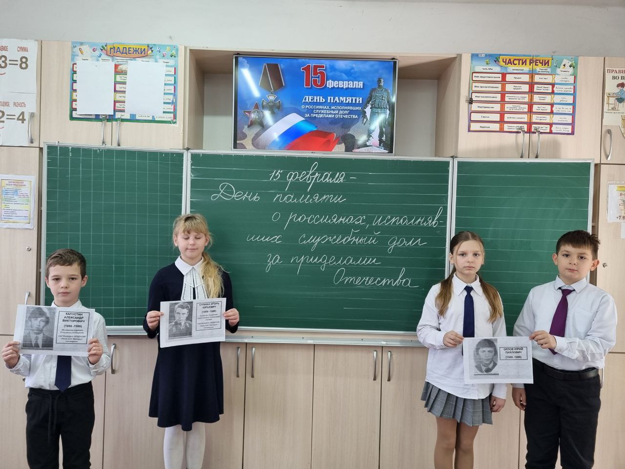 В школьной библиотеке была организована выставка, посвященная Дню памяти о россиянах, исполнявших служебный долг за пределами Отечества.